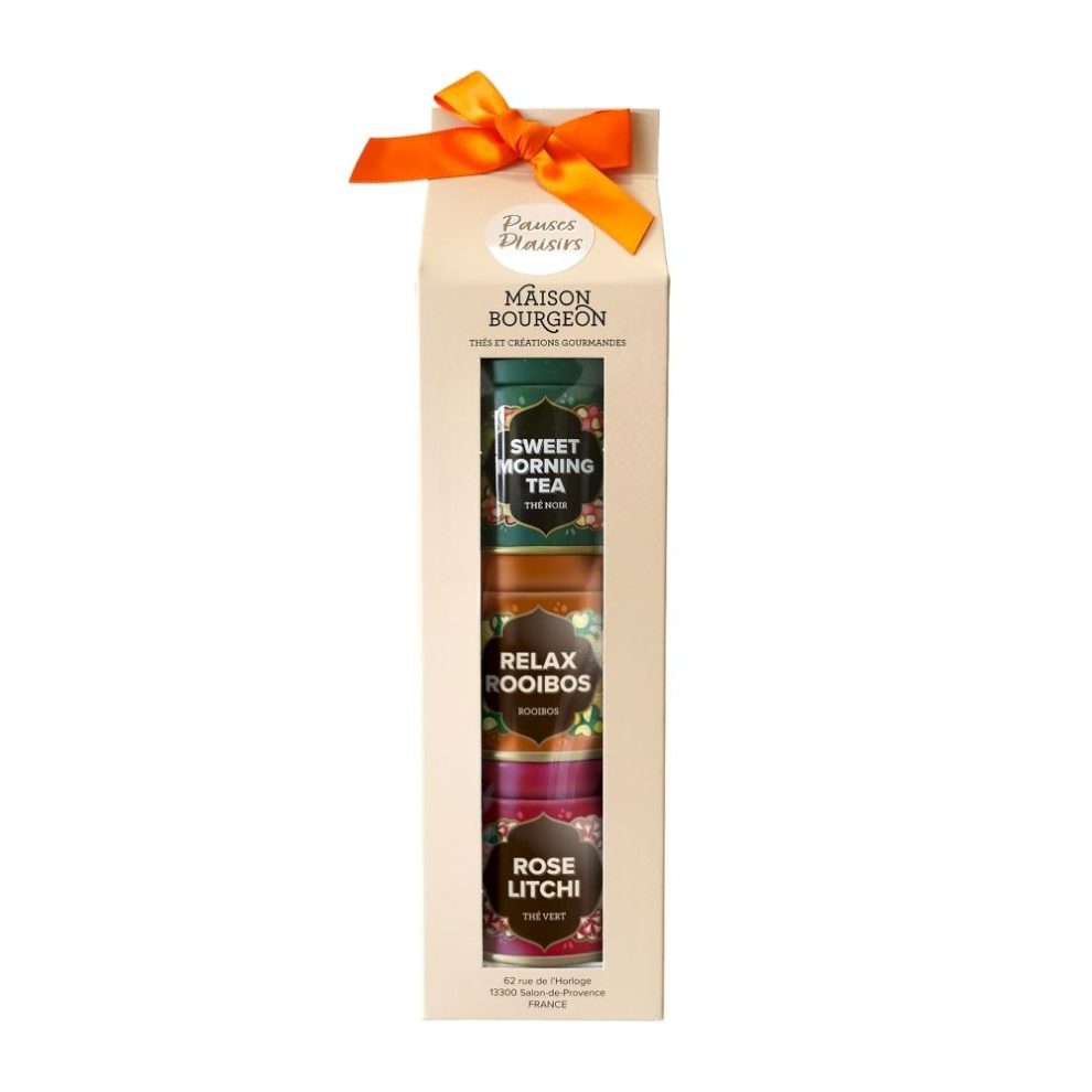 Découvrez ce coffret de la Maison Bourgeon contenant 3 boîtes métalliques de deux thés et une infusion au rooibos à déguster sans plus attendre.
