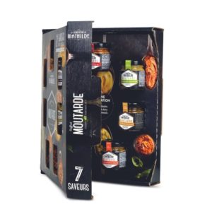 Un voyage gustatif, avec ce coffret découverte de 7 pots de moutarde pour varier les plaisirs.
