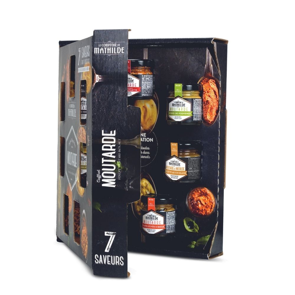 Un voyage gustatif, avec ce coffret découverte de 7 pots de moutarde pour varier les plaisirs.