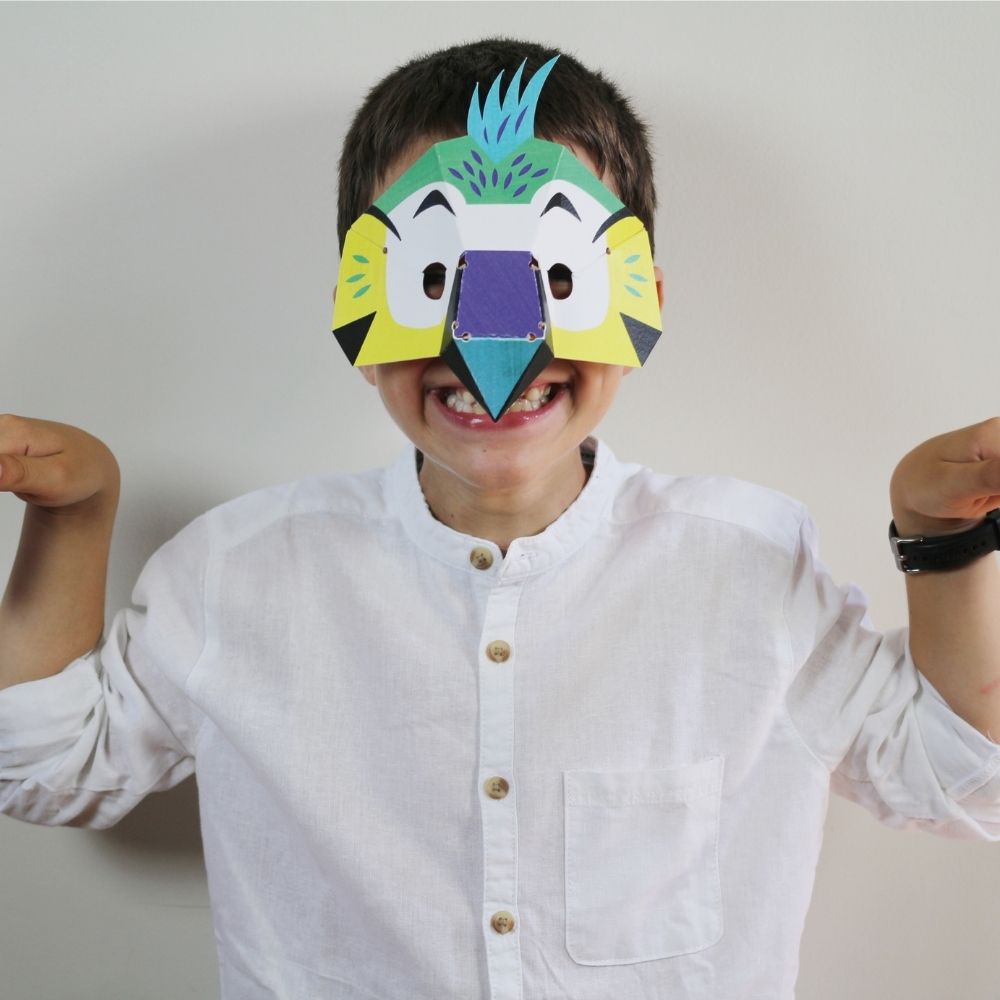 Une activité manuelle réjouissante, 4 masques en papier à fabriquer en 3D et à colorier. Es-tu plutôt singe, perroquet, tigre ou éléphant ?
