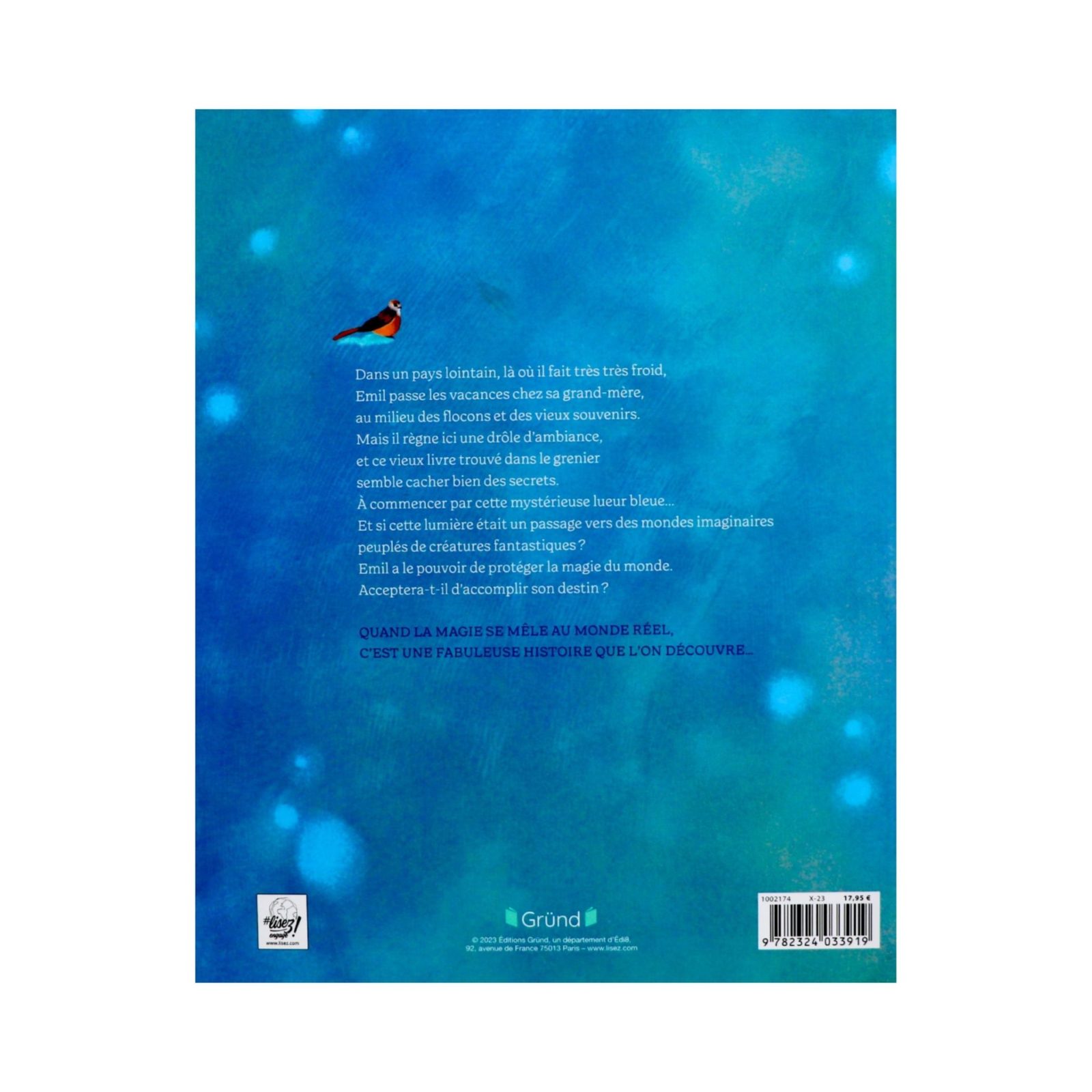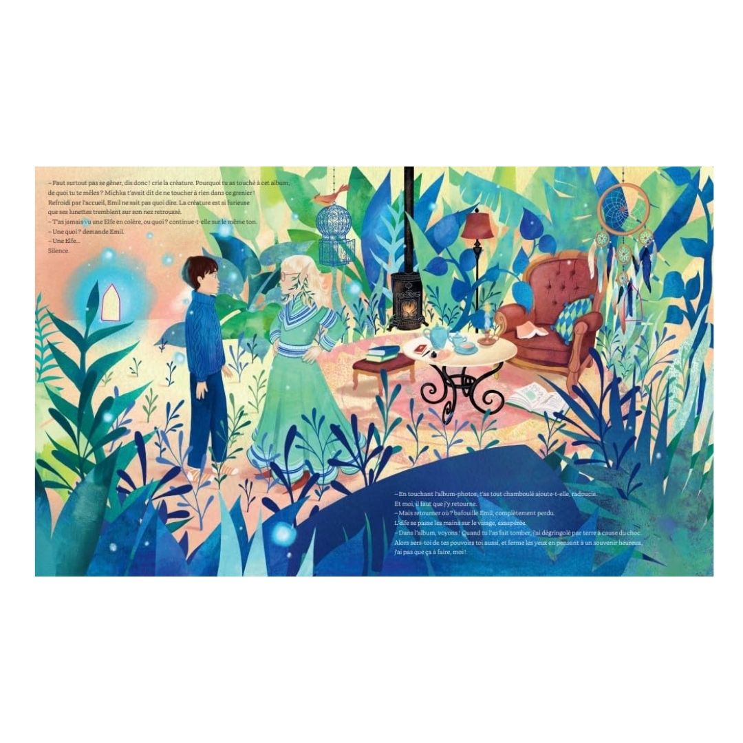 Un jeune garçon nommé Emil passe ses vacances chez sa grand-mère. Pour tromper son ennui, il fouille dans le grenier et trouve un très vieil album photos. Alors que ce dernier lui tombe des mains, des créatures et esprits nordiques s’en échappent et entrainent Emil dans différents mondes magiques. Et si ce voyage était aussi l’occasion de découvrir un incroyable secret de famille ? Un album richement illustré avec des petits livres à l’intérieur pour passer du réel à l’imaginaire.