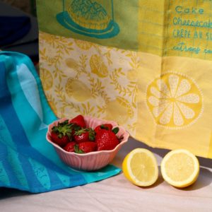 Apportez de la fraîcheur et de l’originalité à votre cuisine avec ce lot de deux torchons tissés à la main à Orthez. Le modèle « Citrons verts » et « Poissons » de Tissage Moutet ajoutent une touche colorée et vitaminée à votre intérieur.