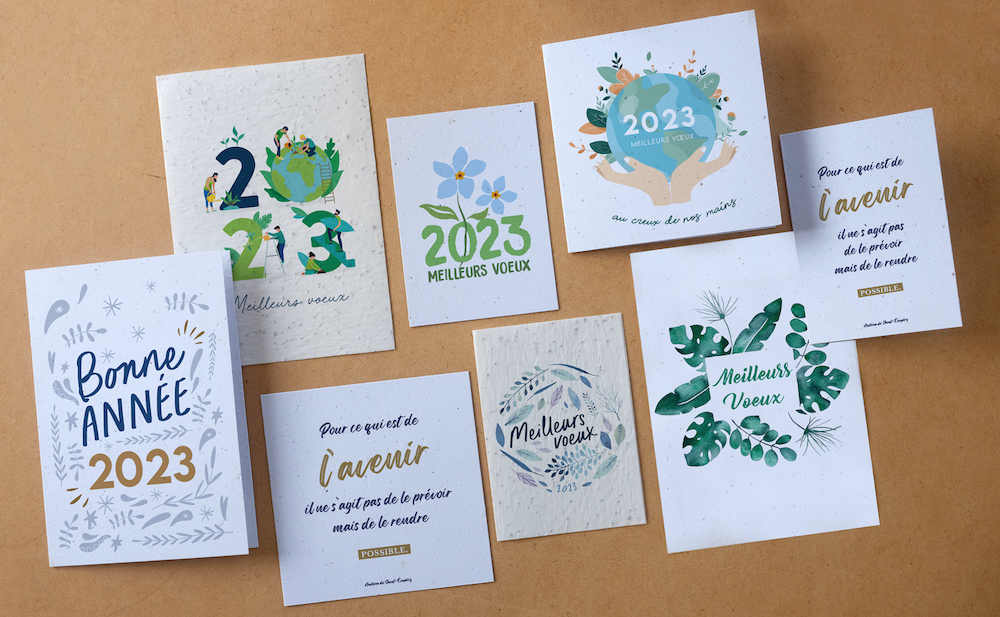 Nous nous engageons, dans toutes les étapes de production, à ne consommer aucun plastique, à recycler nos papiers et nos cartons. Tous nos papiers ensemencés sont recyclés en cas de défaut d’impression. Ils sont soit plantés dans notre potager soit découpé pour la production de papier de calage pour vous offrir une solution 100% biodégradable et bénéficiant à la biodiversité.